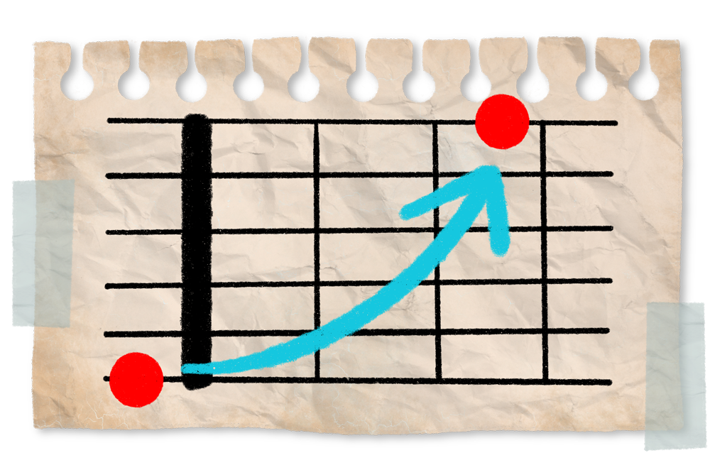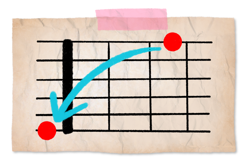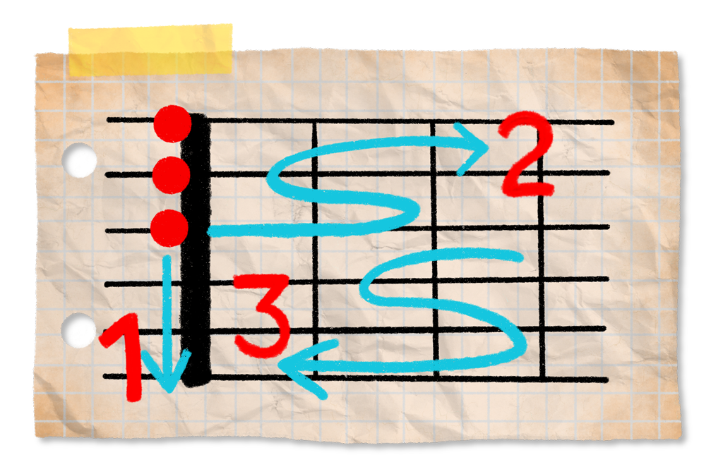 For those just starting to learn notes on the guitar. Start with just 2 notes and develop your skills until you master the entire fretboard.